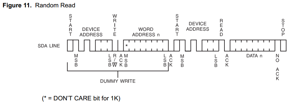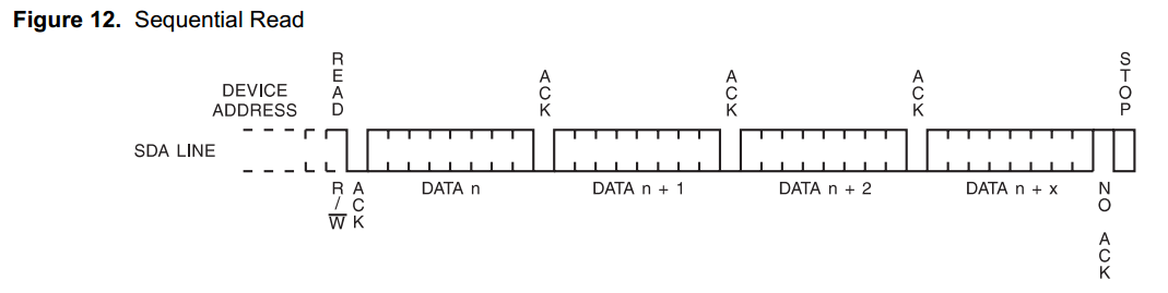 停止条件:SCL为高电平的SDA从低到高跳变是停止条件。在读取序列之后,停止命令将把EEPROM置于备用电源。