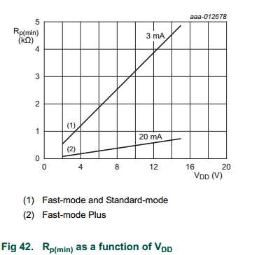 下面列出了Rp的最大值和最小值公式 (依据NXP目前最新的I2C规范文件第55页)