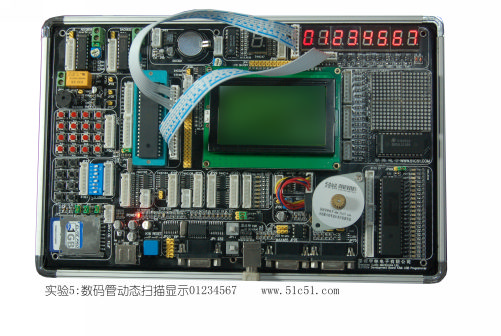 1、接8位数码管的数据线。将数码管部份的数据口 JP5接到CPU部份的P0口JP51.