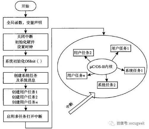 系统软件部分由μC/OS-II实时嵌入式操作系统及相关应用软件组成。μC/OS-II实时嵌入式操作系统仅仅提供了一个任务调度的实时内核,因而需要自行开发一系列与系统运行相关的设备驱动程序、API函数及应用程序,才能将μC/OS-II扩展为一个完整、实用的实时操作系统。