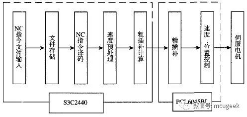 S3C2440根据系统的应用程序对指令进行解释,调用运动控制函数,继而PCL6045BL发出脉冲控制伺服电机去控制执行机构动作,实现运动控制的结果。