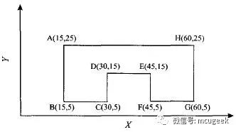 N010 X15 Y25//回到始点(15,25)
