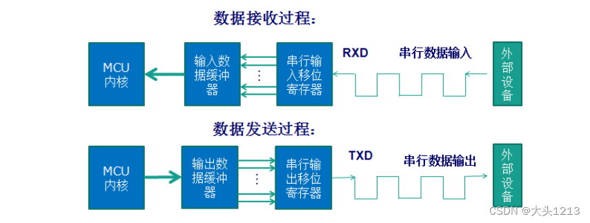 异步串行是指 UART ( Universal Asynchronous Receiver/Transmitter ),通用异步接收 / 发送。