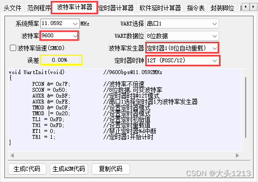 TMOD |= 0x20;//定时器1工作方式位8位自动重装