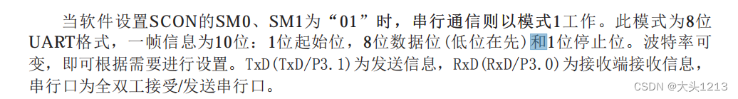 代码体现为: 接收数据 char data = SBUF 发送数据 SBUF = data
