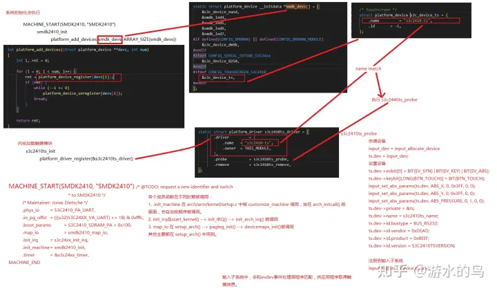 通过分析s3c2410_ts/s3c2440_ts模块加载流程,分析linux驱动中的总线-设备-驱动模型以及输入子系统框架。