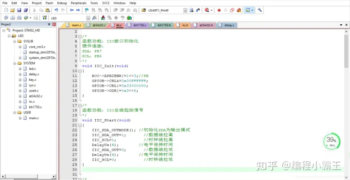 代码说明: 使用 IIC 模拟时序驱动,方便移植到其他平台,采集的光照度比较灵敏. 合成的光照度返回值范围是 0~255。 0 表示全黑 255 表示很亮。