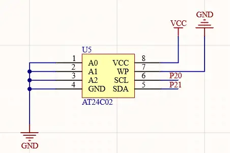 存储电路:存储电路采用的是AT24C02-2K Bit的串行EEPROM存储器,它具备掉电不丢失的功能,它的内部包括一个256字节在AT24C02里面有一个8字节的页写缓冲器。A0A1A2作为硬件地址引脚;WP是写保护引脚,接入高电平时它是只读状态,接地时就可以读和写;SCL和SDA是IIC总线。