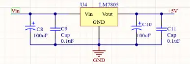 电源电路:常用的5V稳压电路,使用的是LM7805芯片