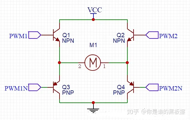 典型的H桥驱动电路如下: