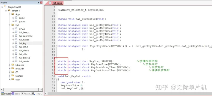2.我一般会把不同功能模块的全局变量、数组定义到对应的.c文件里。