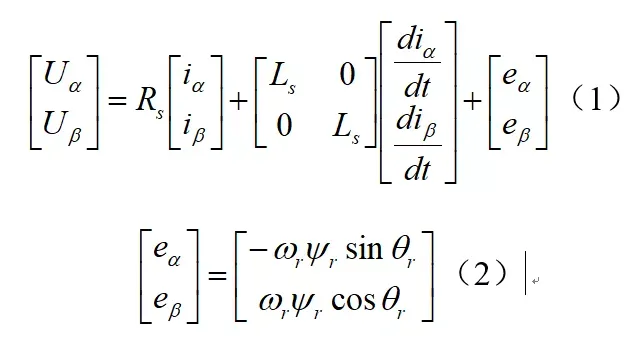 永磁同步电机滑膜变结构的无感FOC控制,主要是从两个方面出发来设计的:(1)永磁同步电机的数学模型;(2)滑膜变结构中滑膜面的选取。永磁同步电机在αβ坐标系下的数学模型: