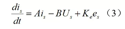 从上面式(1)和(2)中可以看出PMSM在αβ坐标系的数学模型是含有相应的转子的位置的信息的,只需通过相应的手段得到 eα 和 eβ 即可得到转子的位置信息。将上式(1)简化为: