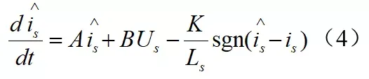 是观测的电流值;为观测器的开关增益;sgn()是开关函数