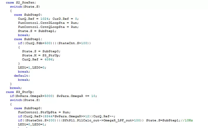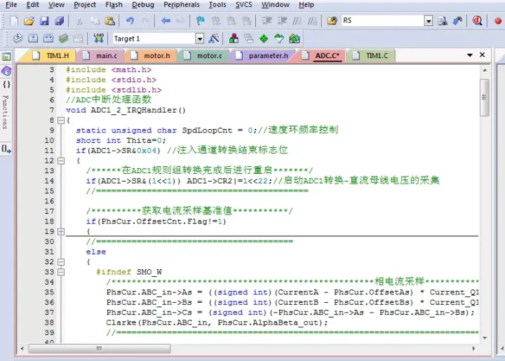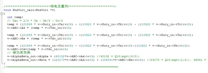 (4)数据格式的处理,在电流采样时,最好将ADC采样的电流转化成实际电流再进行相应的Q格式,但是在这里Q格式的大小也会对系统有着重要的影响,需要在在实际的程序调试中注意。