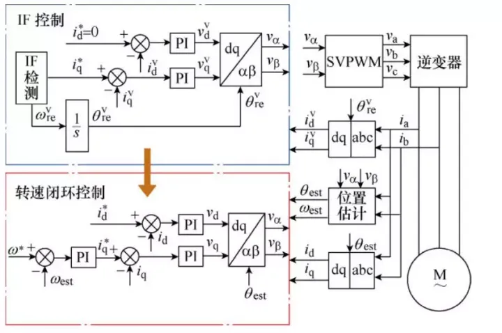 第一步:电流环的反馈变量由dvqv空间下的idv和iqv转换为dq空间下的id和iq。