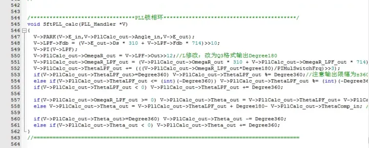 (3)PLL的KP和KI的确定,锁相环的输出的快速性与稳定性将会影响着观测得到角度的线性度和稳定性,因此对于锁相环的参数的调节是至关重要的,通常需根据观测器输出的角度通过串口打印,来做相应的调整;
