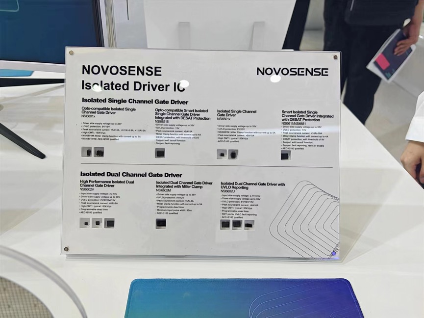 最后,在能源产品方面,纳芯微展出了带米勒钳位功能、可避免功率器件误导通的NSI6801M、通过DESAT功能来保障功率器件不损坏的NSI68515、替换逆变器中霍尔模块的贴片式霍尔电流传感器芯片NSM201x系列。