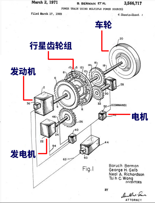 在初次审视这张专利图时,我深感震惊,因为其所展示的技术效果与丰田的THS有着惊人的相似性。
