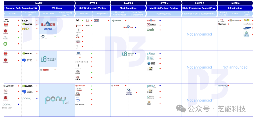 对于P3来说,中国自动驾驶市场目前正处于蓬勃发展的阶段,吸引了诸多知名企业的积极参与。 百度Apollo、WeRide、AutoX、Pony等企业在技术创新、市场布局和合作发展方面展现出了各自的优势。通过累积大量的行驶里程和获得各种许可,正在加速自动驾驶技术的落地应用。 但是市场现实是,由于企业一方面没有正向的现金流,大部分企业的出路是来卷L2+,企业没有上市渠道,融资现在要么找外资(中东资本),要么找汽车产业方卖身。 中国的L4的赛道格外残酷,有团灭的风险。