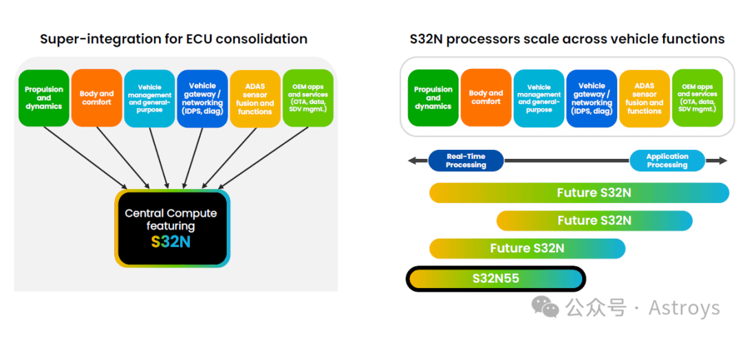 前两个月,NXP发布了S32N55,这是其S32N系列车载处理器的首款产品,目标是“在SDV中实现集中、安全、实时的车辆控制”。这是NXP在TSMC采用5nm工艺节点制造的首款汽车芯片。S32N系列基于NXP的CoreRide中央计算平台打造,可解决车厂在摆脱过时的E/E架构时面临的复杂性、可扩展性和成本问题。