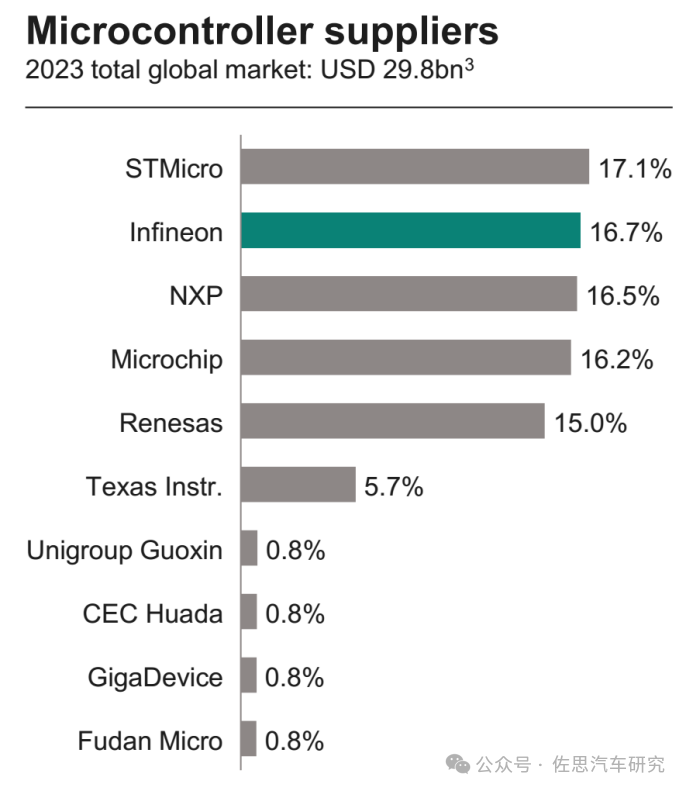 MCU是一个市场集中度很高的领域,2023年全球MCU市场大约298亿美元,前五厂家市场占有率超过80%。