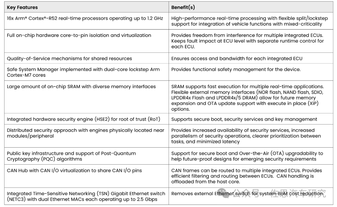 最先进的还是NXP,NXP在2022年就推出了S32Z和S32E系列汽车MCU,采用了16纳米制造工艺,不过NXP称之为Safe and Secure High-Performance Real-Time Processors,本质上就是汽车MCU。