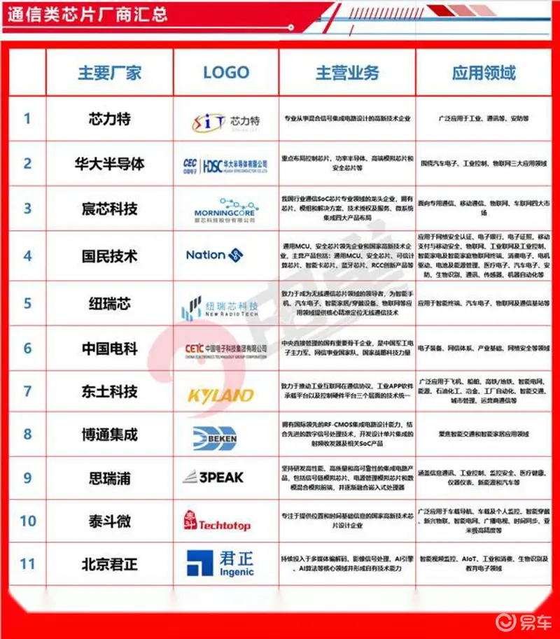 主要用于发送、接收以及传输通信信号,包括基带芯片、射频芯片、信道芯片、电力线载波通信芯片等。