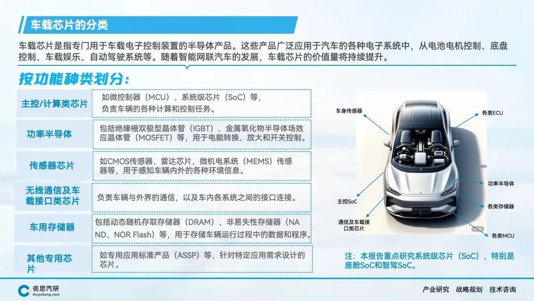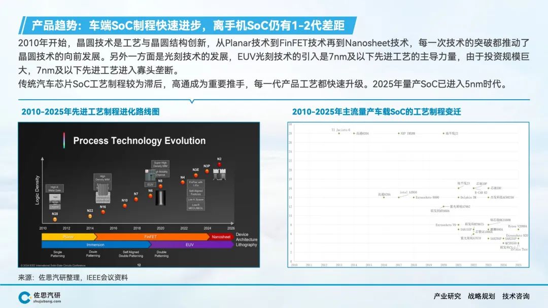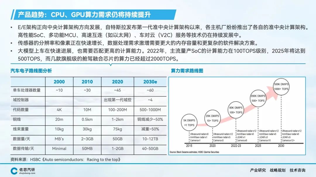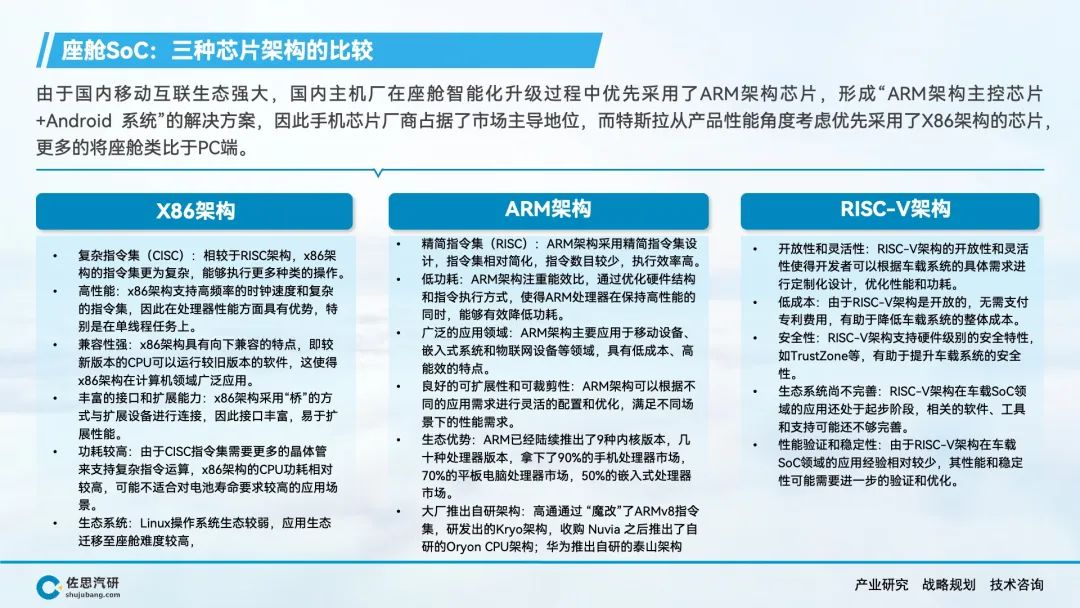 随着E/E架构向中央计算方向发展,以及芯片设计的多种指令集、IP核、异构计算架构的发展,车载SoC已经成为半导体设计和制造领域创新成果的集中体现,本报告主要研究车载SoC。
