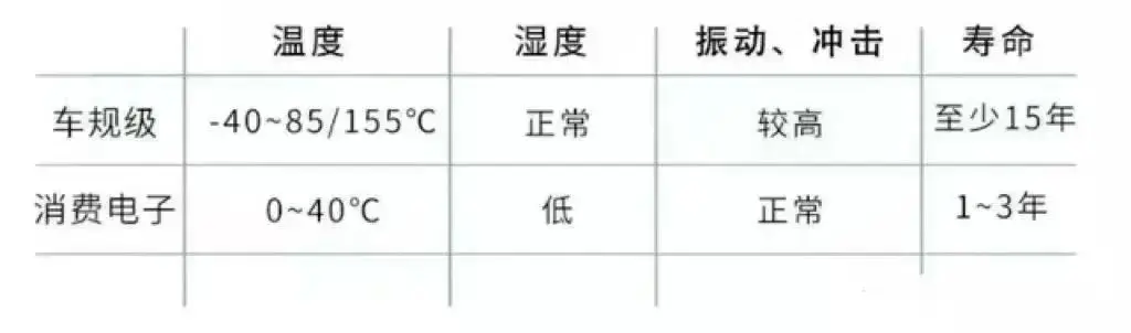 除环境外,汽车电子在可靠性和一致性上的要求一般也大于工业级。