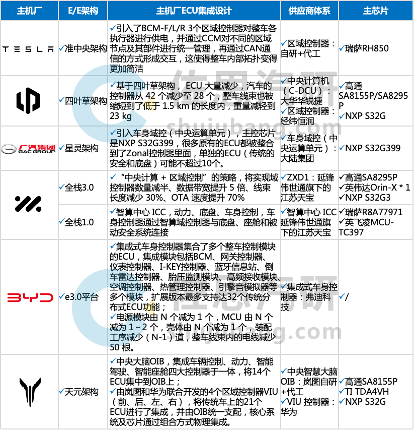 部分OEM主机厂ECU集成设计思路