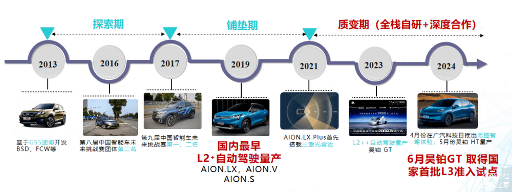 作为中国最早的自动驾驶探索者之一,埃安早在2013年就起步研发自动驾驶,实现国内最早搭载L2上车,技术储备丰富。