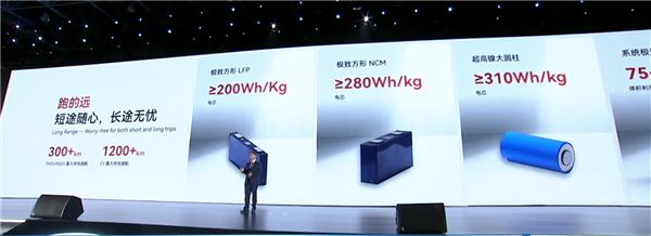 大圆柱三元系列:能量密度140~240Wh/kg,支持纯电700~1200km,插混/增程150~300km。