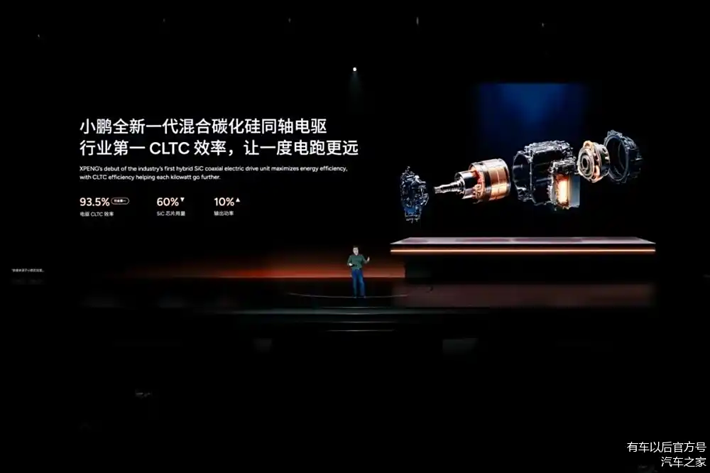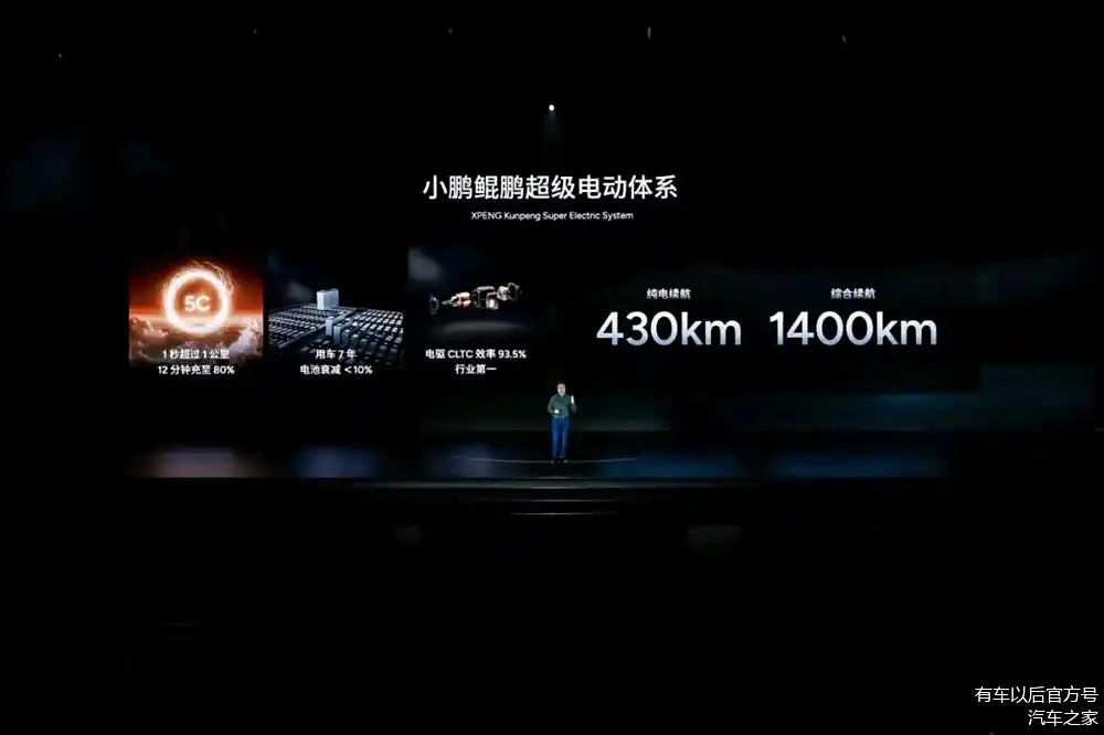 全新一代混合碳化硅同轴电驱,电驱CLTC效率高达93.5%,并且体积仅为上一代电驱的三分之一,为车内腾出更多空间,让“得房率”更高。小鹏鲲鹏超级电动体系纯电续航达430km,综合续航里程超1400km,并通过搭载全新同轴混合碳化硅电驱,实现高达93.5%的CLTC效率,稳居行业第一,具备在全球范围内充电快、续航长的实力。