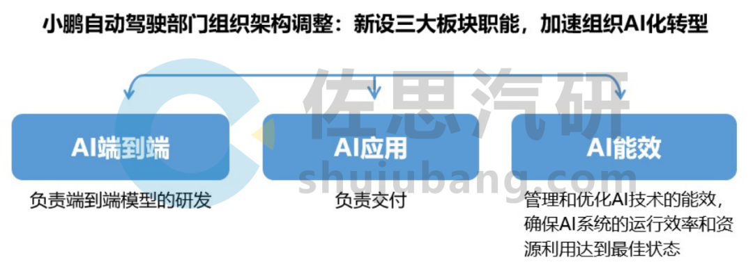 小鹏也在2024年调整了技术开发部。小鹏技术开发部涵盖感知、规划、控制、定位的算法研发。调整之后,技术开发部被拆成了三个部门,分别是AI端到端、AI应用、AI能效。