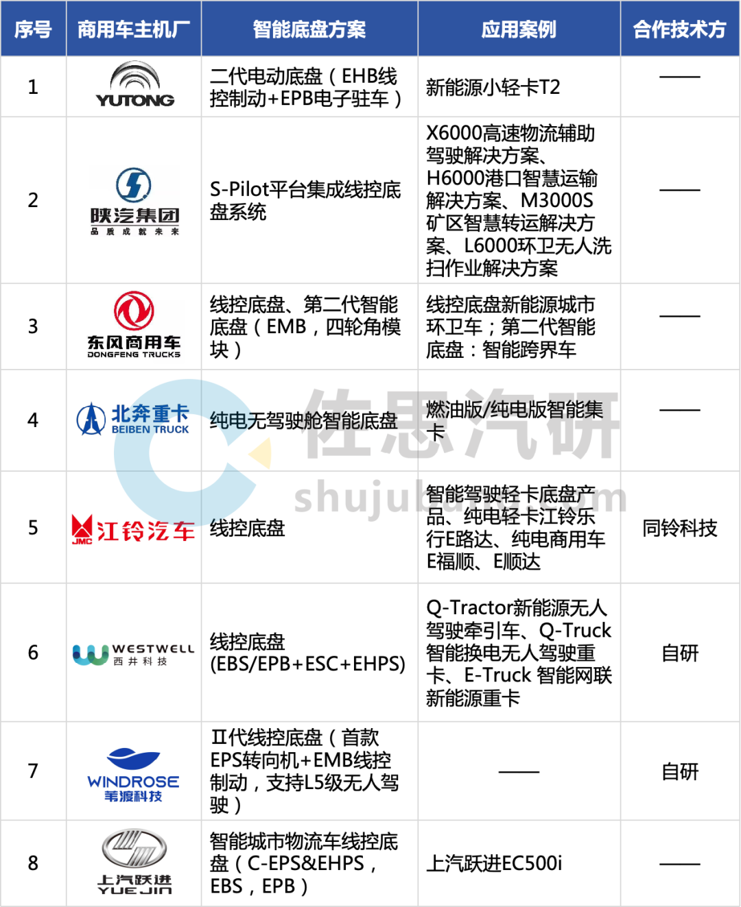 二、20+商用车主机厂布局线控底盘,商用车底盘加速智能化