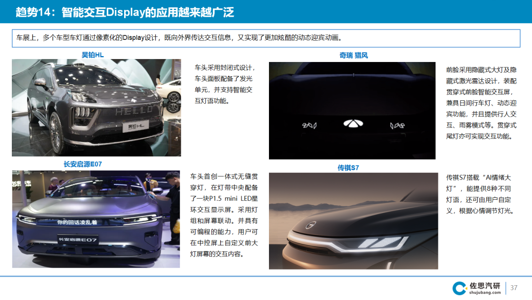除传祺S7外,昊铂HL、长安启源E07、奇瑞猎风等车型也搭载了智慧灯语,智己LS6和L6也升级了“ISC智慧灯语系统”,可自定义灯语。此外,首发亮相的东风日产N7 也搭载了“魔法画布”智能交互灯语系统 ,且前后灯组都能显示自定义的文字和图案。