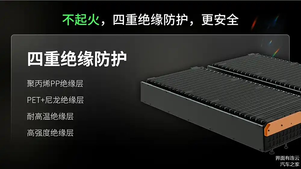 据了解,这款电池的能量密度高达190Wh/kg,处于磷酸铁锂电池的顶尖水准,并支持超10C高倍率放电,兼具大容量与高功率,为电动车提供更强劲的动力输出。在安全性上,电芯与电池PACK本体双安全,在电芯层级可以满足多点针刺不起火不冒烟,通过创新设计聚丙烯PP绝缘层/PET+尼龙绝缘层/耐高温绝缘层/高强度绝缘层,四重迭奏,利用新型复合材料实现导隔反热一体化设计,高低压分离实现热电废分离,定向排气排废进行秒级泄压和泄温,即使在针刺、高温、形变等极端条件下也可为用户提供极致安全保障。