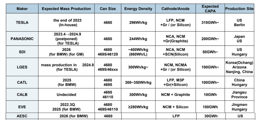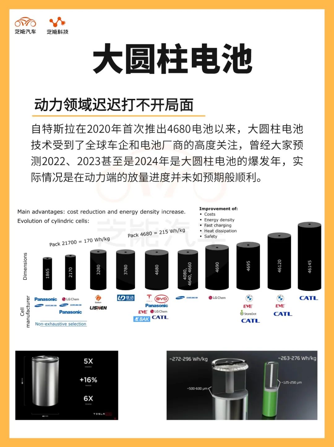 自特斯拉在2020年首次推出4680电池以来,大圆柱电池技术受到了全球车企和电池厂商的高度关注,曾经大家预测2022、2023甚至是2024年是大圆柱电池的爆发年,实际情况是在动力端的放量进度并未如预期般顺利。