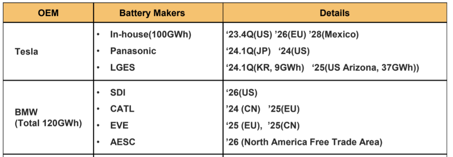 ● Panasonic 分别为 80 GWh、128 GWh、348 GWh、408 GWh(含 PPES);