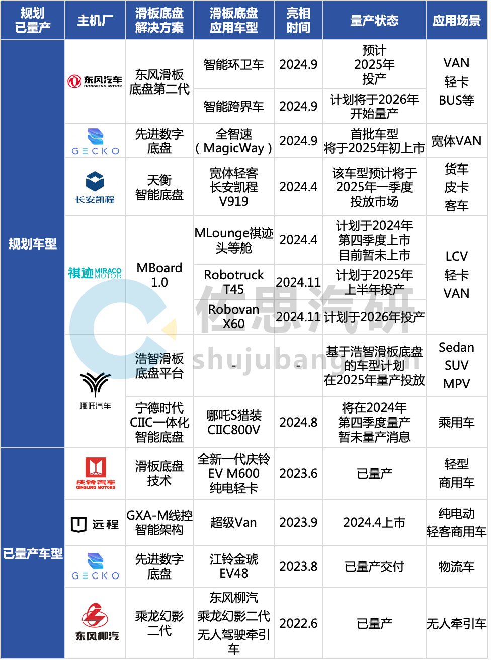 Part.02 国内多家主机厂布局滑板底盘技术,预计2025~2026年在轻型商用车迎来小规模量产