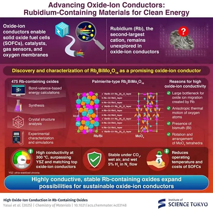 东京科学大学(Institute of Science Tokyo)的研究人员开发出一种基于铷(Rb)的新材料,有望大幅提升燃料电池技术水平。这种新材料具有高导电性,能够更高效地传输氧离子。