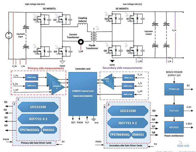 德州仪器的TIDA-010054双主动桥参考设计是为L3充电器所精心设计的。下图显示了电路和相关部分,如碳化硅栅极驱动器。