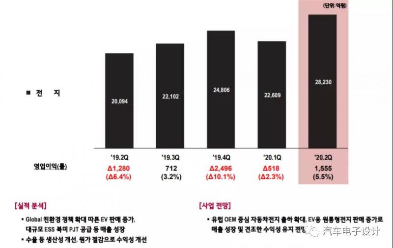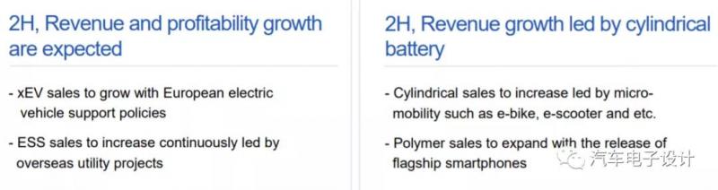 1)LG 化学公布的 Q2 业绩财报显示,二季度销售收入为 6.935 万亿韩元(RMB 407.3 亿元);实现净利润为 4191 亿韩元(RMB 24.6 亿元),增长了近 5 倍。电池业务部门 Q2 实现营收 2.82 万亿韩元(约合人民币 165.6 亿元),营业利润为 1555 亿韩元(约合人民币 9.1 亿元),这个主要归因于欧洲电动汽车的产量提升和圆柱电池的产量的提高,圆柱电池的生产扩张了 60%,盈利 1071 亿韩元 。