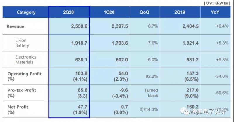 2)三星 SDI 营收增长 6.4%,至 2.559 万亿韩元,但是营业利润下降 34%,至 1038.1 亿韩元,Q2 净利润同比下降 70%,至 477 亿韩元,总体不是特别好 。