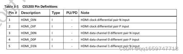 CS5203的管脚配置如下: