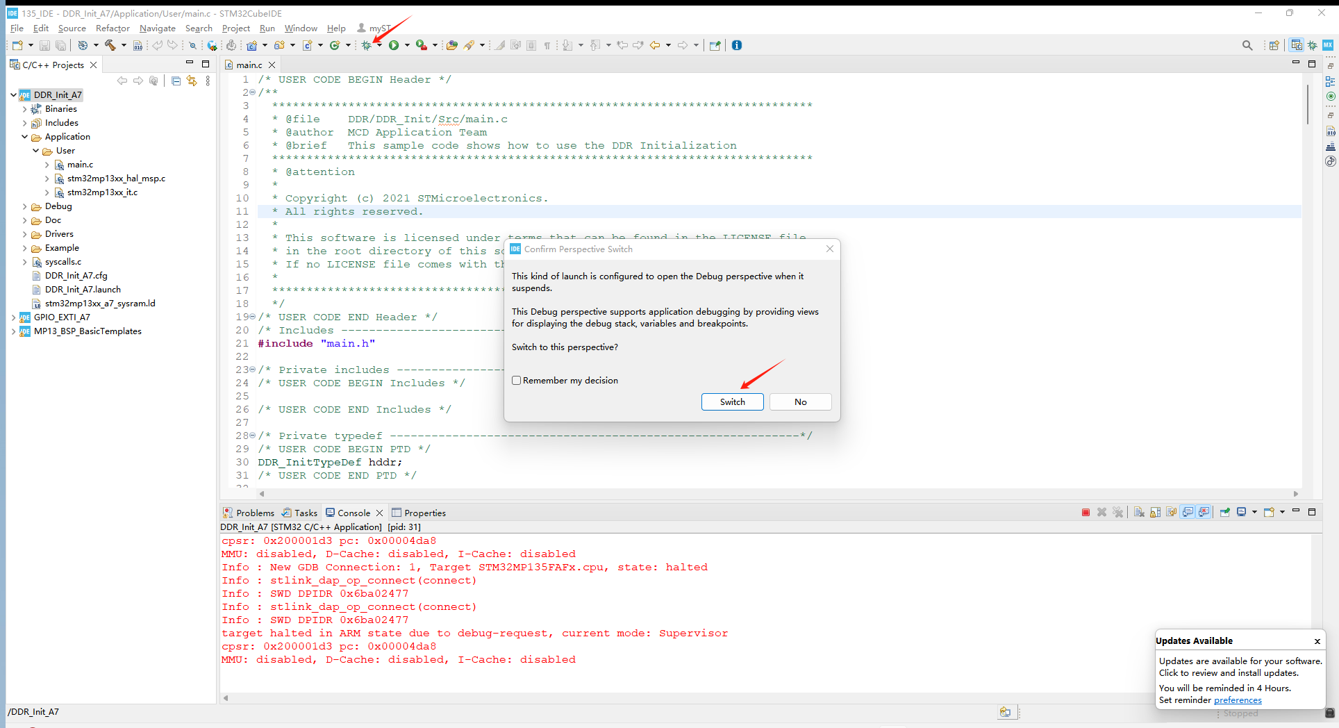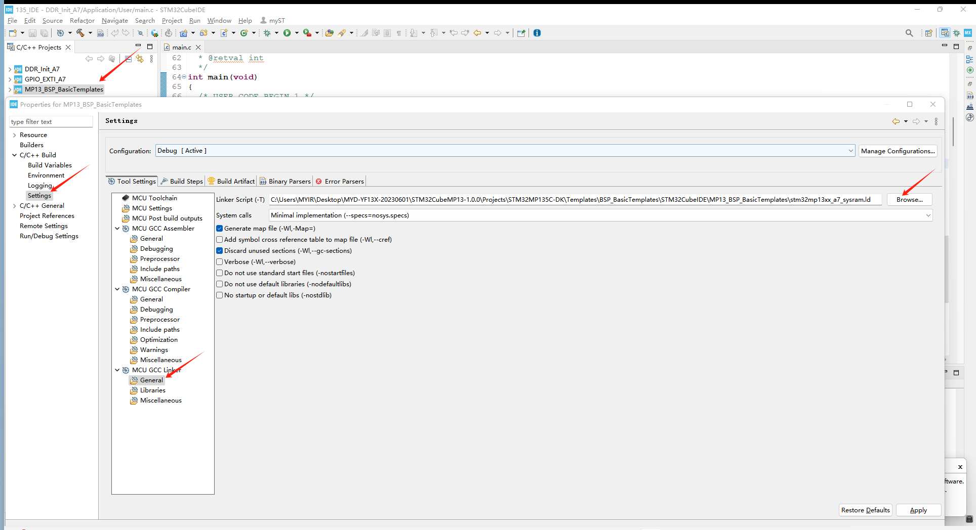 在初始化完ddr后,接下来就是让应用程序跑在ddr上,这里我们选用MYD-YF13X-20230601STM32CubeMP13-1.0.0ProjectsSTM32MP135C-DKTemplatesBSP_BasicTemplates路径下的工程应用: