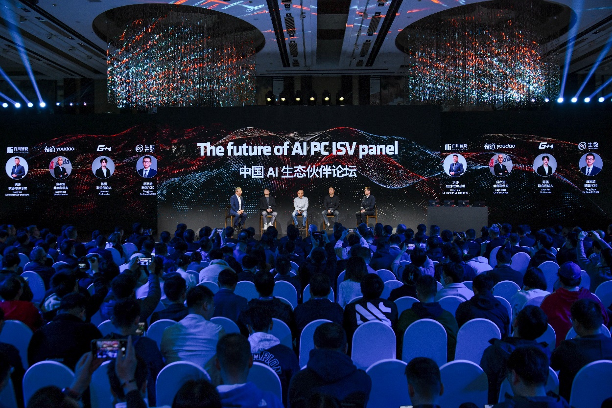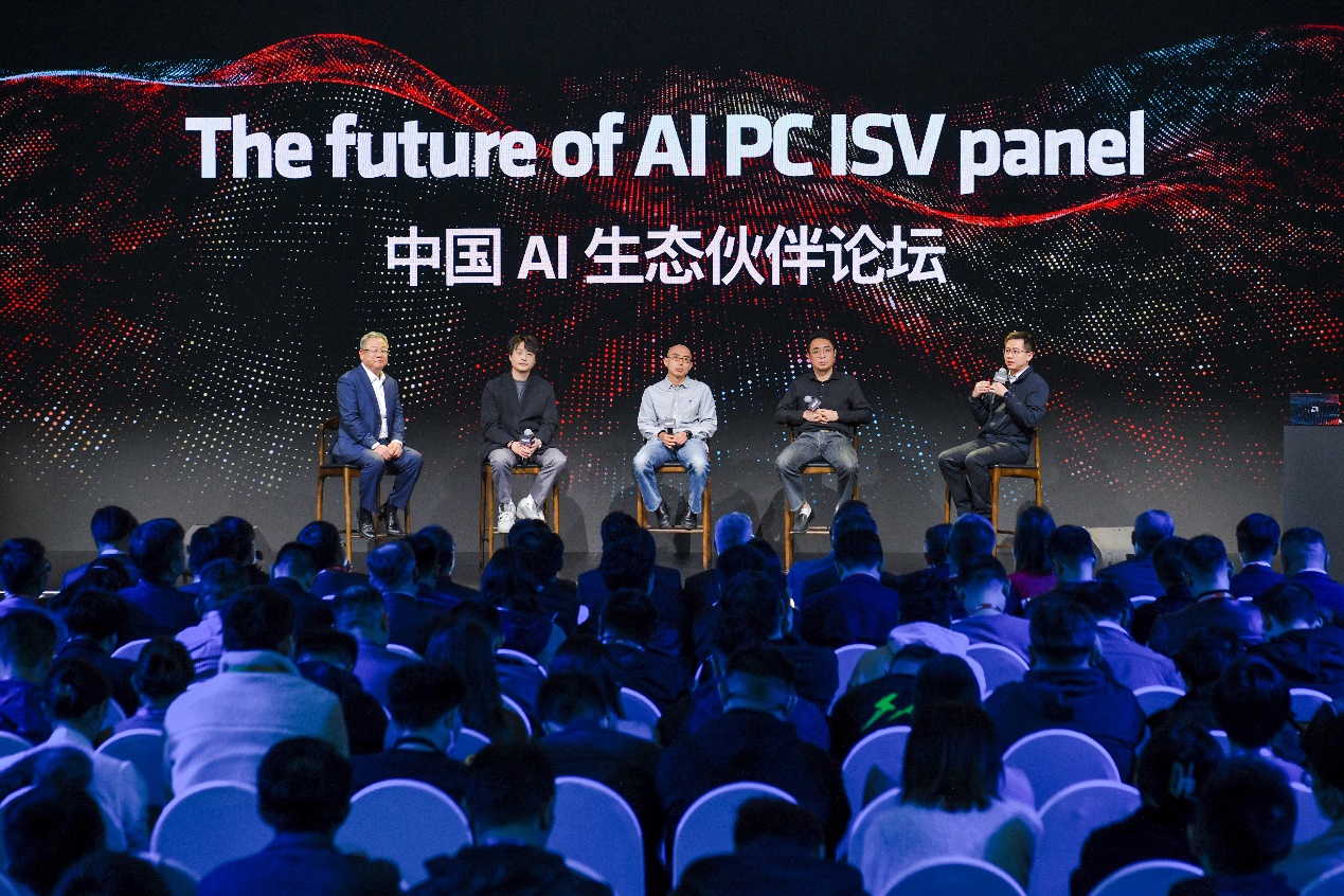 AMD高级副总裁,大中华区总裁潘晓明在峰会还主持了中国AI生态伙伴论坛,分别邀请了4家具有代表性的不同领域的代表——百川智能联创/联席总裁洪涛,有道首席科学家段亦涛,游戏加加联合创始人陈佩,生数科技联合创始人兼CEO唐家渝,共同探讨了AI PC、AI应用的创新与发展。