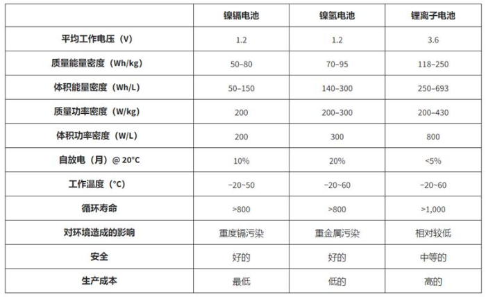 表 1:常用电池的特性