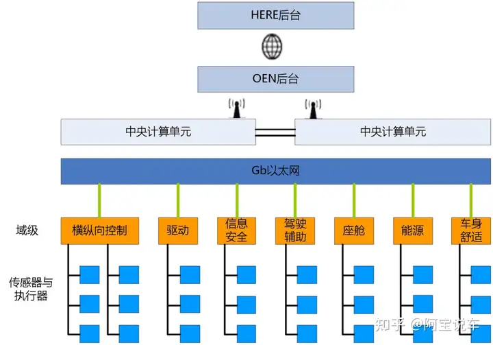 分层域控——功能域控制器( 智驾域控制器、车身域控制器、动力域控制器等模块)与中央域控制器并存;